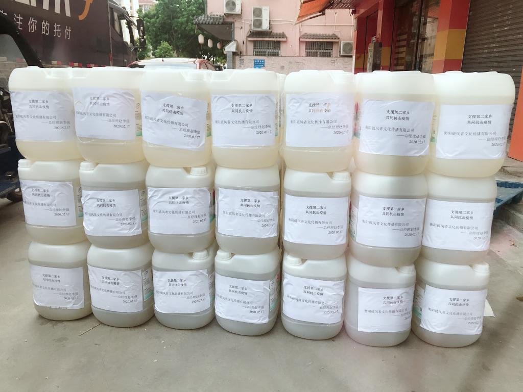 赵李强捐赠给衡阳市交通运输局的1.5吨84消毒液