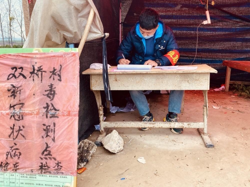 同样是预备党员的造价1702班宋存辉,积极响应地方号召,做一名疫情防控的志愿者,将自己的一份力量奉献给社会。2月10日至15日,他在老家江苏省盐城市荣昌村村口做防疫检查,检查每一个出入人的体温做好登记,并宣传疫情的实时情况,劝导村民除非必要日常生活少出村、不窜门,出门要带口罩,限定出门时间,坚决不让非本地人非本地车进入本地区村口,在平凡的岗位上奉献着自己的青春和热血。