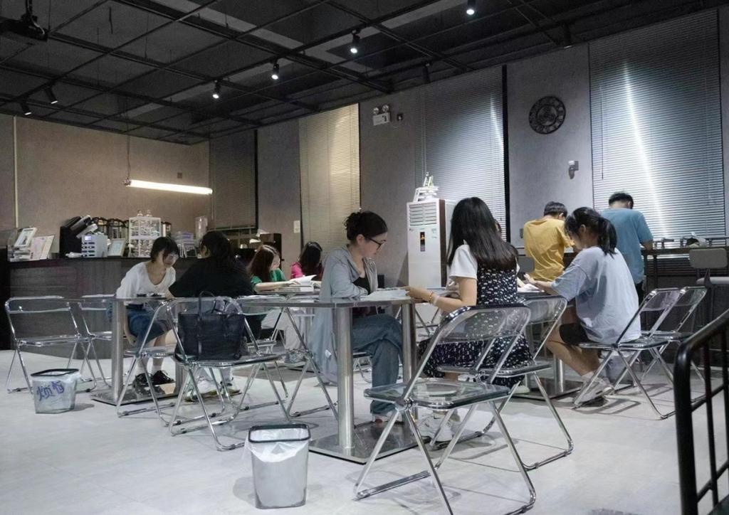 “理想·生活”主题书吧是设计艺术学院学生创新创业项目,项目负责人为营造宁静的读书氛围,在内部设计上以打破环境单一性和平面化,突出使用功能为切入点,提取了工业风的特征和元素,以浅灰为主色调,强调了地面与墙面的复古感,细致搭配的木质吧台、金属椅子、皮质沙发、塑料片窗帘、金属骨架灯具与设计风格相得益彰,形成了环境表现力和视觉冲击感。书吧以艺术设计、建筑、文学书籍为主,采用“书吧+”的概念,配有音箱、投影仪,可提供阅读、读书交流会、文创作品展示、茶饮、咖啡等服务。