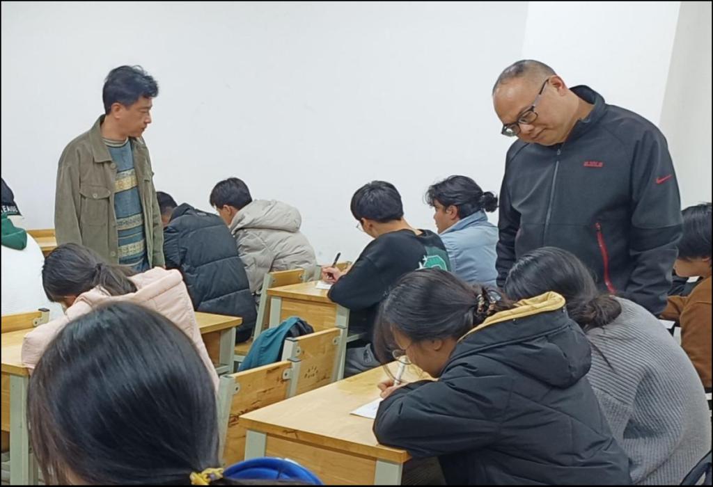 测验期间,同学们态度严谨,重视程度较高,能独立思考,没有交头接耳现象。有的同学胸有成竹,按序答题,下笔犹如春蚕食叶声,体现出对评估知识熟稔熟知;也有部分同学眉头紧蹙,落笔犹豫,显然对一些知识点的掌握略显生疏。张帆指出,测验结束后,要认真评阅测验成绩,仔细分析等级率产生的原因,及时反馈给辅导员、班主任、班委会以利于帮扶促进,再次提高。