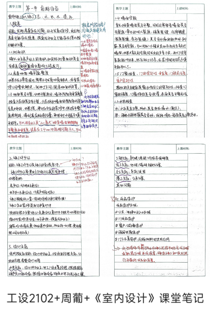 在评选过程中,学院评委老师严格按照笔记工整有序、简洁大方,条理清晰;字迹精美、不潦草;内容充实,知识框架条理清晰,与专业契合且与教材内容紧密联系;页面整洁有条理,无污迹和大面积涂改;记录有创新性,有较高借鉴价值和学习价值的评选标准和要求,共甄选出建筑学、工业设计、产品设计专业“精彩笔记”9份,并选择部分进行集中展示。