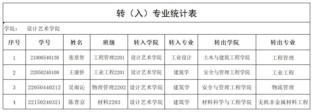 按照《英国上市公司官网365学籍管理规定》(湖工政发[2020]26号)、教务处《关于2022级学生转专业工作的通知》(院教务〔2022〕202号)、《设计艺术学院2022级学生转专业实施细则》的要求,经学院党政联席会议讨论决定,同意张景智等4名同学拟转入设计艺术学院相关专业现予以公示(见附件)。公示期2023年3月6日-2023年3月9日,若有异议,请实名向设计艺术学院教研办6213室反映(朱老师:61251)