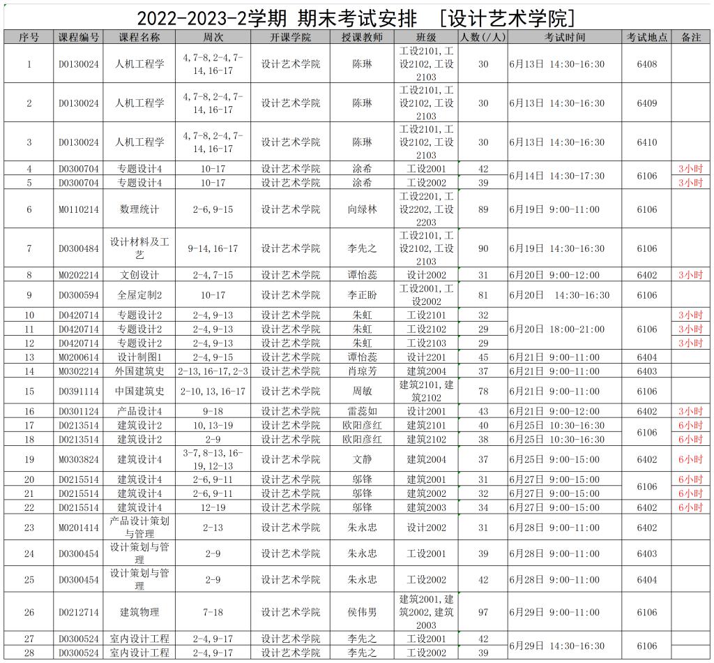 2022-2023-2学期 期末考试安排[设计艺术学院]