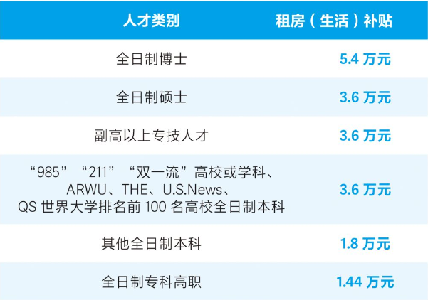 非公企业为新引进的大学生缴纳人才集合年金,给予“985”“211”“双一流”高校或学科、ARWU、THE、U.S.News、QS世界大学排名前100名高校本科和硕士8000元/年,给予博士10000元/年,最高可享受5年。