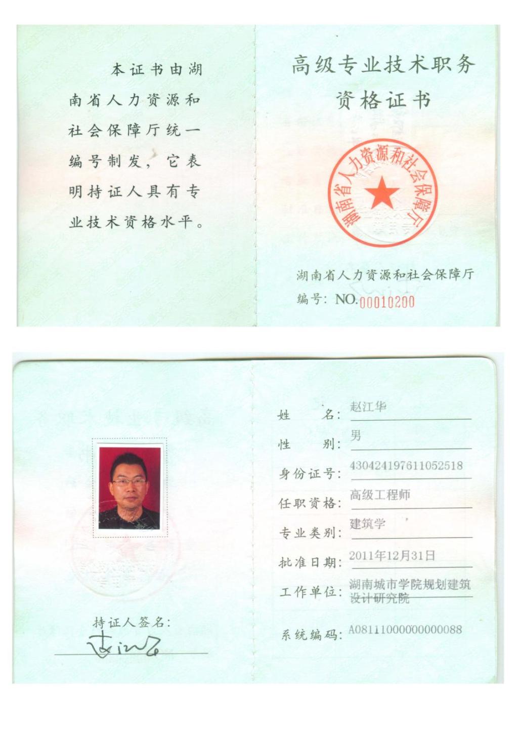 赵江华,1976年11月生,高级工程师,毕业于中南大学城市规划专业,中华人民共和国一级注册建筑师。先后主持与参与《阳明公馆·梅园》、《滨江文化客厅》、《乐田智作马栏山科技文创基地》、《天下黑茶温泉中心》、《蓝山创品国际智慧物流园》、《益阳高铁南站匝道及落客平台换乘中心及停车场设计项目》、《湖南华益食品有限公司综合楼以及宿舍主体土建及附属工程》、《衡东县人民医院》等项目设计。
