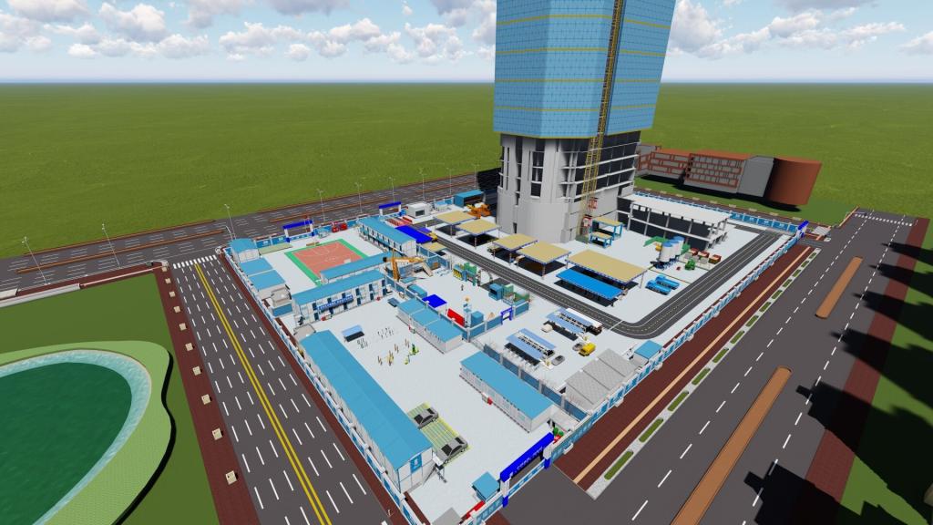 在施工现场布置时,首先对施工场地平面图进行二次优化分析处理,确定了施工区域的划分,并依据现场需求确定了用电、用水管道的布置方式,依据规范的基础上合理布置施工场地。