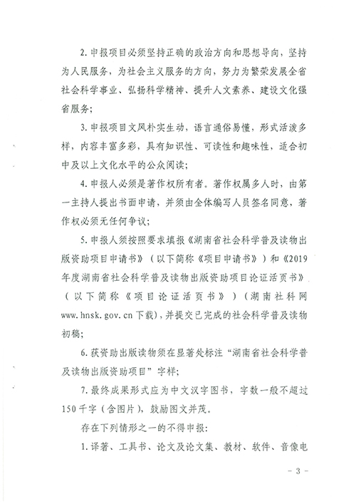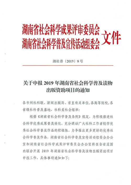 转发:关于申报2019年湖南省社会科学普及读物出版资助项目的通知