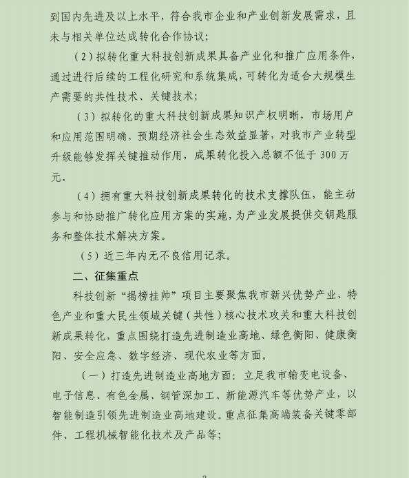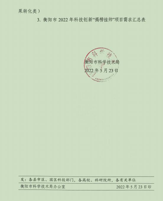 转发:关于征集2022年衡阳市科技创新“揭榜挂帅”项目需求的通知