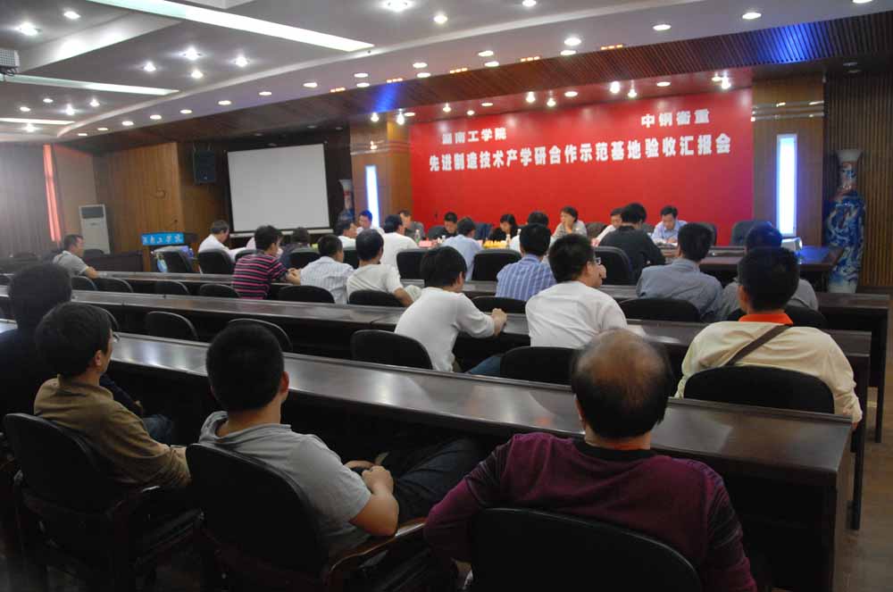 专家组听取汇报后,对我院产学研示范基地实验室、中钢集团衡阳重机有限公司产学研合作项目进行了实地考察,认真审阅了有关材料并对相关问题进行了质询。在完成各项检查考核工作程序后,专家组对基地的建设给予了充分肯定,对基地条件、技术创新能力、团队建设、人才培养和运行管理等方面所取得的成绩给予高度赞赏。专家组一致认为产学研合作示范基地的建设达到了预期的规划目标,一致同意基地通过检查考核,且考核结论为优秀。专家组还就示范基地在今后的产学研合作项目拓展、成果鉴定及转化、产学研合作的示范和辐射作用等方面提出了宝贵的建议。