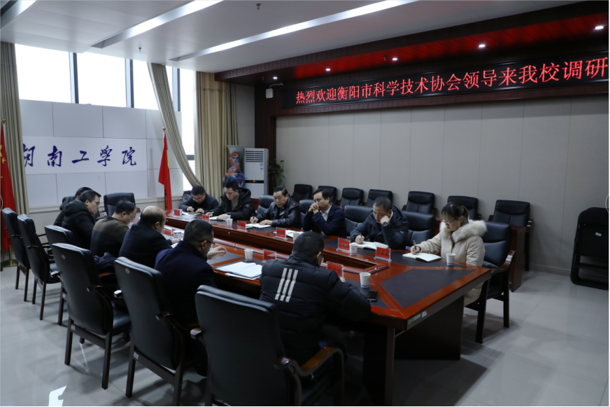 1月10日上午,衡阳市科学技术协会主席邹树梁教授一行6人来英国上市公司官网365走访调研。党委委员、副校长刘升学、何建雄出席了调研会,党政办公室、科技与校企合作处、学科建设与发展规划处、教务处等相关部门负责人参加了会议,调研会由何建雄副校长主持。