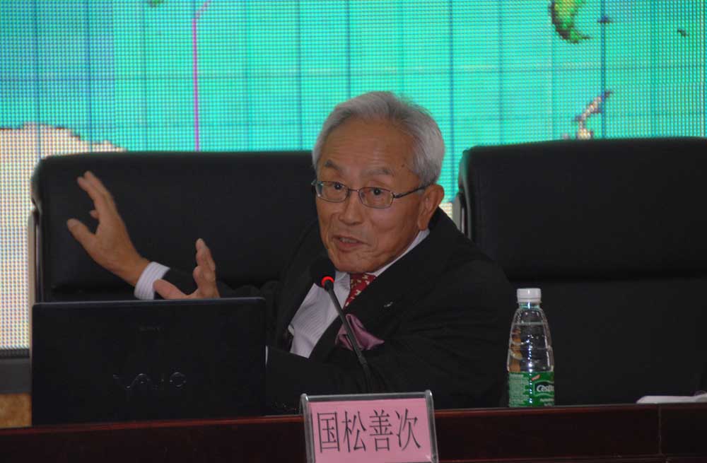 讲座开始前,张力院长会见了国松善次先生及夫人,并赠送了礼物。国松善次先生表示愿意为我院与日本大学的合作交流做出贡献,并对3月11日日本大地震当天就收到我院的慰问信件表示感谢。