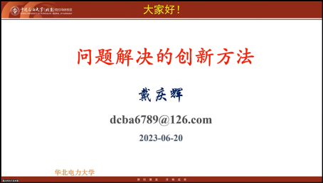 2023年6月20日,华北电力大学戴庆辉教授应邀开展以“问题解决的创新方法”为主题的线上学术讲座。英国上市公司官网365100余名师生通过腾讯会议线上聆听了本次讲座。