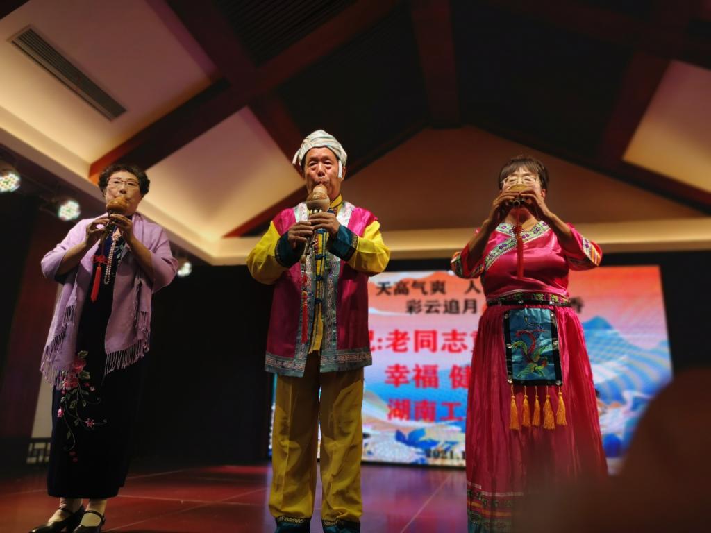 离退休老同志以支部为单位表演了丰富多彩的文艺节目,表达了爱党爱国情怀。