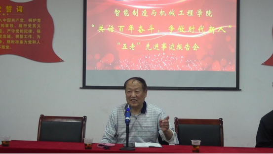4月25日,智能制造与机械工程学院邀请了刘志儒教授和老党员黄耀忠同志来校作“五老”先进事迹报告,院党委书记范志明、全体辅导员和学生代表参加了报告会,院党委副书记王本强主持会议。