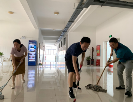 支部全体党员不惧炎热,驱车赶到学校,对数理楼三楼以及数学教研室地面、玻璃进行大扫除活动,大家手持扫把、撮箕、拖把、抹布等清扫工具,一个个干劲十足,不怕脏、不怕累,充分发挥了党员先锋模范作用。经过大家的辛勤劳动,公共区域的楼道以及数学教研室的面貌焕然一新。