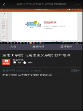 因时间紧迫,“纲要”、“原理”、“基础”、“形势与政策”等思政课主干课程开课宜早不宜迟。因此,马克思主义学院果断地制定了推进在线教学的时间进度表,要求各承担2019-2020第二学期的教学任务的老师以教务处下达的班级和课表为对象,通过启动教学平台、建立班委微信、qq群联系学生,确保2月19日准时、全面开学开课,为全校线上教学起到了良好的带头作用。