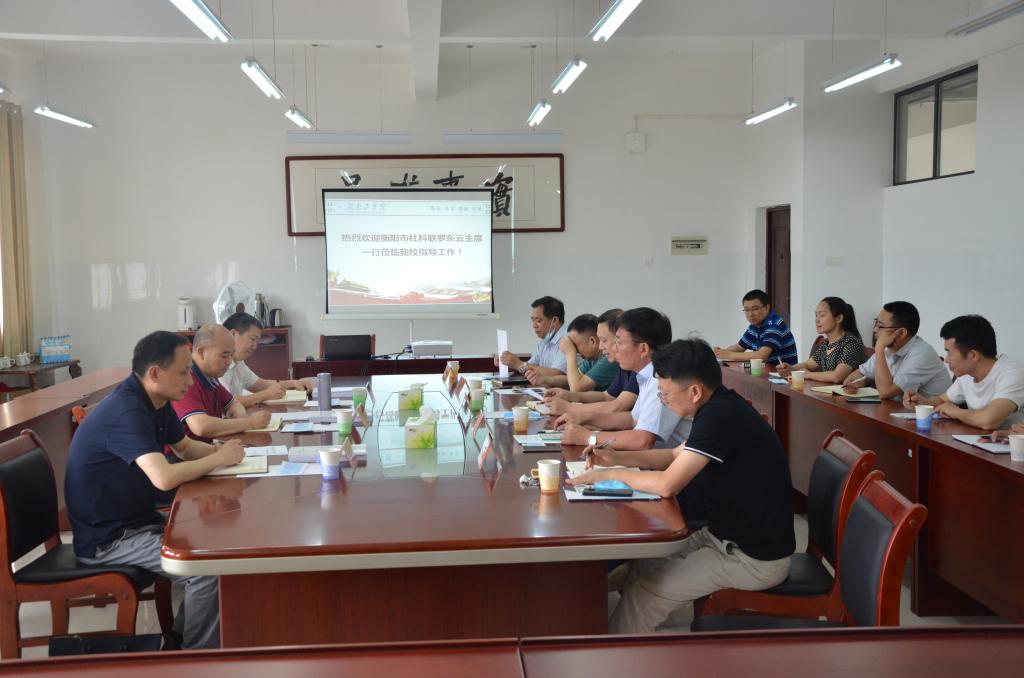 5月20日上午,衡阳市社科联主席罗东云一行3人来英国上市公司官网365考察衡阳市工业文化科普基地建设工作。汇报会在社科楼318室举行,校长罗建华致欢迎词、副校长胡穗作申报汇报。汇报会由马克思主义学院院长肖中云主持。