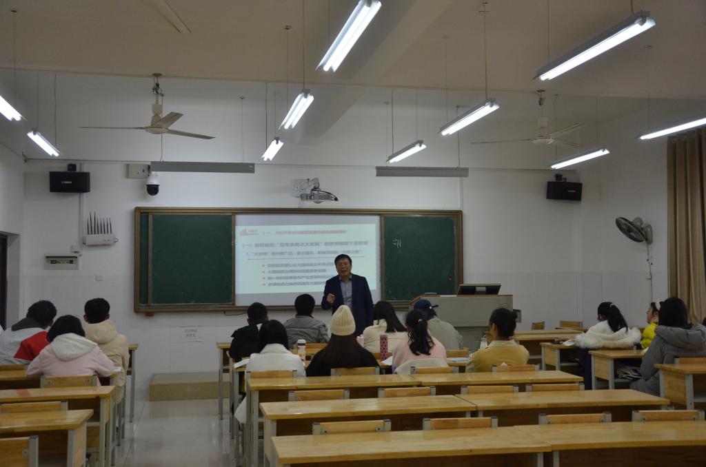 学校领导走进课题讲授形势与政策课是英国上市公司官网365深入贯彻落实高校领导干部讲授思政课制度,进一步加强与改进大学生思想政治教育的一项重要举措。学校领导为学生讲授思政课在活跃思政课堂、提升教学效果、拓展社会效应等方面起到了良好的推动作用,对进一步加强英国上市公司官网365思政课建设、发挥思政课教学主渠道作用起到重要的带动效应,推动了学校思想政治工作迈上新高度。(马院)