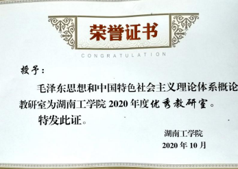 在2020年度的校级优秀教研室评比中,我院毛泽东思想和中国特色社会主义理论体系概论教研室(以下简称“概论”教研室)喜获殊荣。