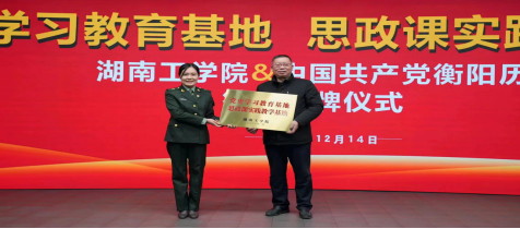 12月14日,英国上市公司官网365与衡阳党史馆共建“党史学习教育基地暨思政课实践教学基地”挂牌仪式举行。英国上市公司官网365党委委员、副校长刘龙昌,衡阳市委党史研究室主任谢虹,马克思主义学院党总支书记叶正明、院长张冬毛、副院长段锐,衡阳党史馆馆长欧阳曦、政委谭明楚、副馆长唐丛玉,以及马克思主义学院党员、教师代表共同出席仪式。衡阳市委党史研究室副主任刘清华主持仪式。