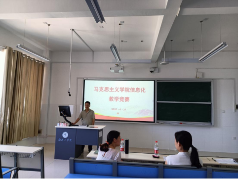 为学习贯彻党的二十大精神, 大力实施教育数字化战略行动,引导思政课教师主动适应人工智能与大数据等新技术变革,提高思政课课程育人能力,提升教育教学信息化建设水平,马克思主义学院于627午在408智慧教室举办了2023教师信息化教学竞赛暨学校教师信息化教学竞赛院内选拔赛。