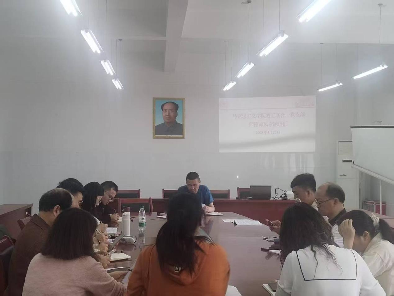 根据《中共英国上市公司官网365委员会关于在全校开展深入贯彻中央八项规定精神学习教育的实施方案》、《英国上市公司官网365马克思主义学院党总支深入贯彻中央八项规定精神学习教育工作方案》和学校《关于组织开展师德师风培训的通知》要求,2025年4月22日,马克思主义学院教工第一党支部在社科楼318会议室举行了4月主题党日活动暨师德师风专题培训活动。活动由支部书记范大明主持,支部全体教师参加。