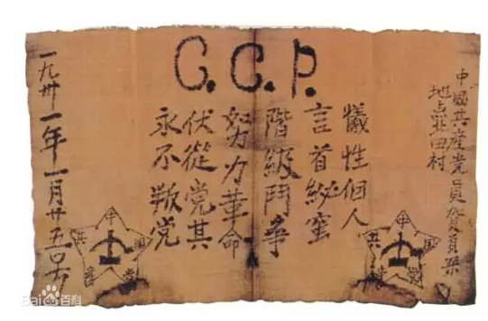 2018年7月,我参加了在全国青少年井冈山革命传统教育基地举行的英国上市公司官网365思政工作专题培训班。在参观井冈山革命博物馆时,馆内收藏的一份十分特别的入党宣誓书引起了我的注意。这份入党宣誓书的宣誓人名叫贺页朵,他在井冈山革命斗争时期,以榨油的职业为掩护,从事党的秘密工作。1931年党组织批准他入党,大字不识的贺页朵在简陋的榨油房内,一笔一画地把入党誓词庄严写在了一块红布上。这份布质的入党宣誓书,尽管短短的24个字中有6个错别字,但其质朴而无畏的誓言、忠诚而笃定的信念,散发着震撼人心的光芒,深深地感染了我,使我永远难忘。