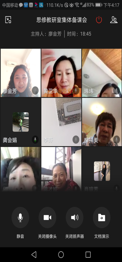 会上,教师们根据2月19日以开设思修》、《原理》、《纲要》三门思政课的第一阶段线上授课情况,提出了在线上教学过程中遇到的困惑,比如网络平台不稳定,影响课程进度;互动受限,无法体现教学相长;担忧学生的自主学习能力等。针对以上问题,教研室成员集思广益、讨论热烈。老师们还交流和共享了各自掌握的案例教学素材