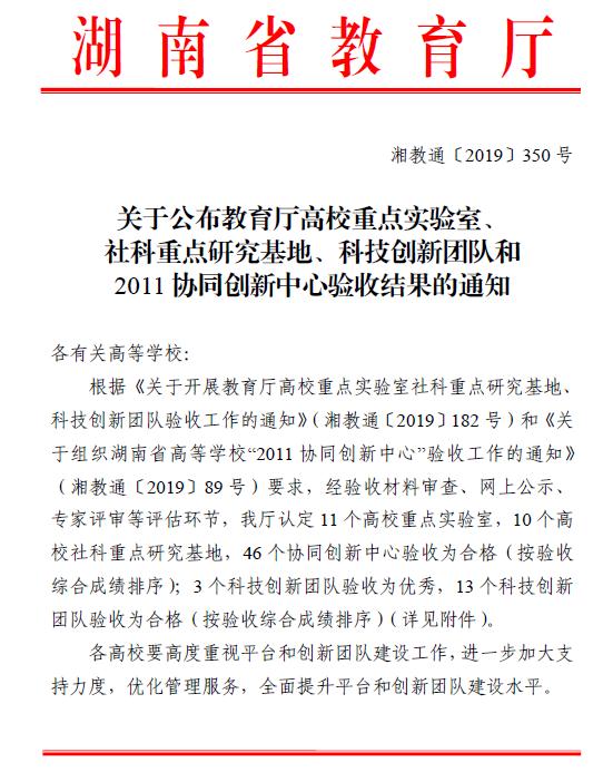 近日,湖南省教育厅下发了《关于公布教育厅高校重点实验室、社科重点研究基地、科技创新团队和2011 协同创新中心验收结果的通知》,经验收材料审查、网上公示、专家评审等评估环节,英国上市公司官网365汽车零部件加工成形关键技术湖南省高校科技创新团队验收通过。