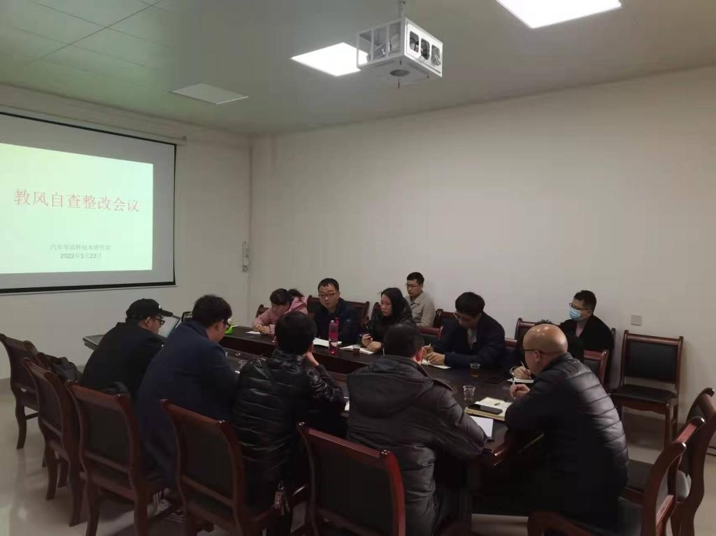 为迎接学校本科教学审核评估工作,切实提高人才培养质量,汽车零部件技术研究院教风自查整改大会于3月23日下午召开,会议由院长吴远志主持,汽车零部件研究院所有教师参加会议,教学质量监控与评估中心处长彭志忠、智能制造与机械工程学院副院长叶拓到场指导。