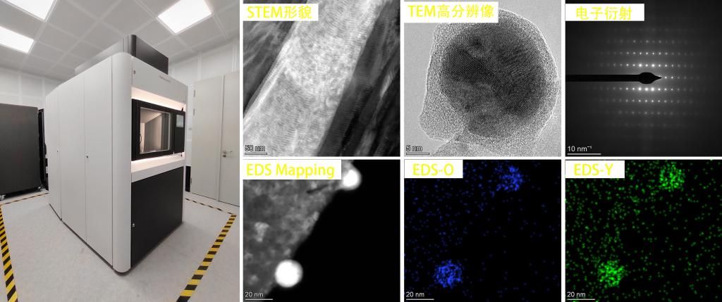 透射电子显微镜的主要功能:TEM形貌、TEM高分辨像(HRTEM,信息分辨率0.12nm)、电子衍射、STEM形貌、STEM原子像(BF,HAADF-STEM,点分辨率0.16nm)、X射线能谱分析(EDS点、线、面分析)。加速电压为200kV