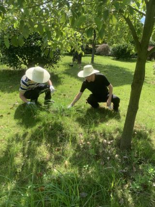 到达绿化区后,志愿队伍在人事处党支部书记张兴、招生就业与发展规划联合党支部书记彭立新的组织带领下,以小组为单位,按照具体分工,沿着北校门西侧绿化区和求实路沿线向北整体推进,对杂草、落叶、杂物进行了全面的清理。