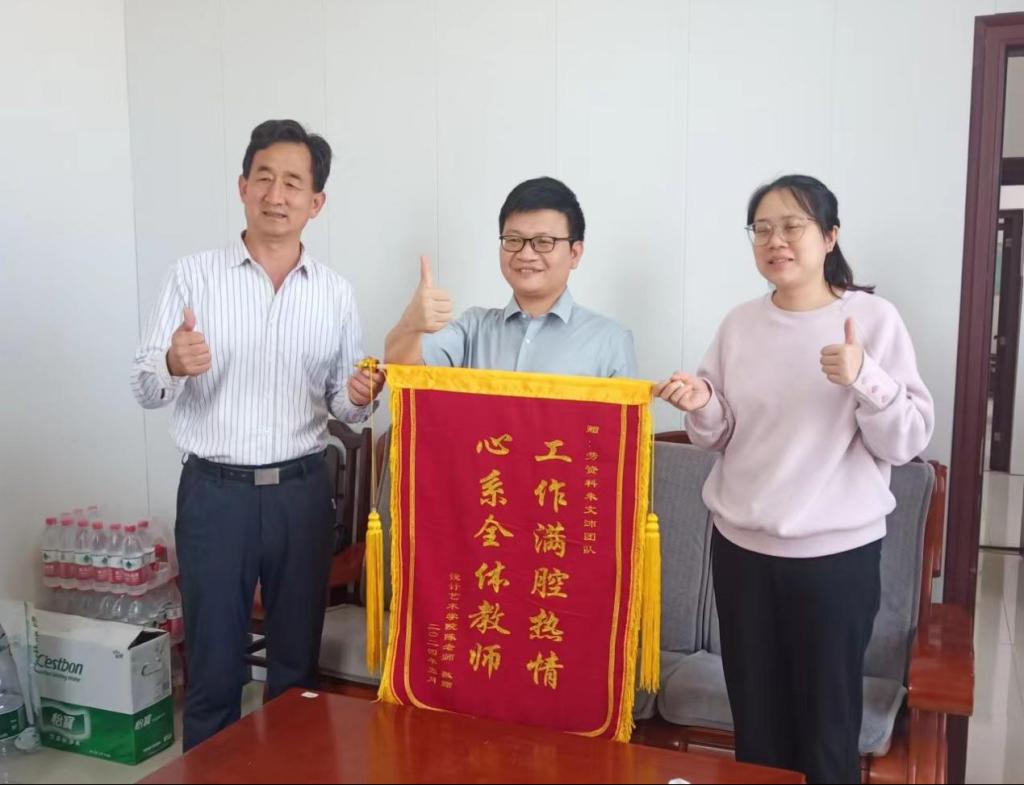 202467日上午,设计艺术学院退休教职工陈保安给人事处劳资科科长朱文沛送来印有“工作满腔热情,心系全体教师”的锦旗,感谢她解决自己的退休手续办理的相关问题以及热情周到的服务。