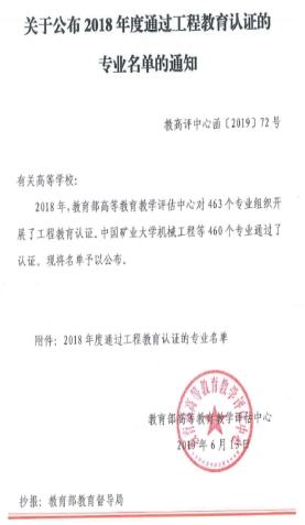 安全工程专业2018年通过工程认证              2020年安全工程专业为国家一流专业建设点