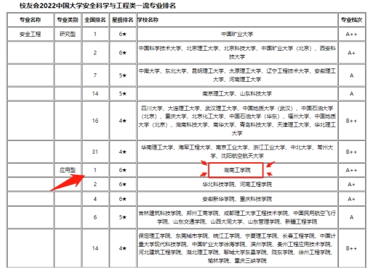安全工程专业高居校友会2022中国大学安全工程专业排名(应用型,6★)榜首