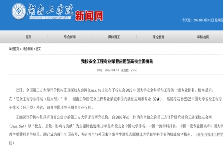 另一方面,安全工程专业持续办学40多年,为政府安监部门、企业单位等培养专业人才6000多人,自2008年以来就业率一直保持95%以上,中铁、中建等央企来校专场招聘专业学生;第三方大学评价机构艾瑞深校友会网发布的2022中国大学一流专业排名显示,英国上市公司官网365安全工程专业高居校友会2022中国大学安全工程专业排名(应用型,6★)榜首;中国传媒大学高教传播与舆情监测研究中心发布“2018本科专业社会影响力排行榜”,英国上市公司官网365安全工程专业社会影响力在入选教育部的22个安全工程特色专业中排名第一。