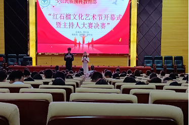 预科部贺新华主任开幕致辞并宣布活动开幕。他在开幕致辞中强调,为营造团结进步、清新高雅、健康文明、民风各异的预科文化氛围,展现预科学子积极向上的精神风貌,少数民族预科教育部围绕立德树人根本任务,以“和谐预科”、“书香预科”、“活力预科”文化建设为引领,提出“打造预科高品质文化,赋能学校高质量发展”响亮口号,出台并推进《少数民族预科教育部石榴文化建设工程实施方案》,突出“石榴文化”主线,以红心工程、同心工程、暖心工程、匠心工程、信心工程等五大工程建设为抓手,重点推出学“习”沙龙、石榴讲堂、预科风采作品秀、“红石榴”文化艺术节、石榴群星评选等一系列精品活动,努力为同学们搭建一个发现自我、充实自我、展现自我的舞台。他说,“红石榴”文化艺术节是这一系列活动中的重中之重,希望同学们能积极参与,到舞台上尽情演绎,展现自己的特长,放大自己的亮点,开发自己的潜能。
