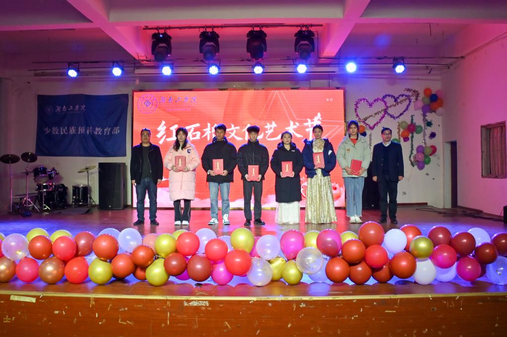 10分钟热场视频《相约湖工》深情回顾2023级预科生9月入校以来学习、生活的点滴温馨瞬间,引起现场师生热烈共鸣。随后,辅导员欧阳洪宣读少数民族预科教育部“红石榴”文化艺术节表彰文件,何建雄等领导依次为获奖先进集体和个人颁奖。