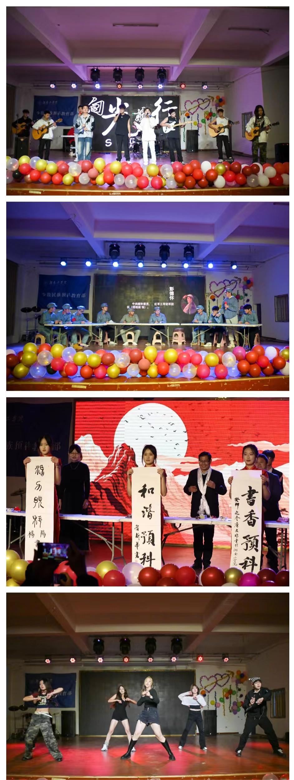 少数民族预科教育部第一届“红石榴”文化艺术节自2023年11月启动以来,始终聚焦学生思想政治引领,以铸牢中华民族共同体意识为主线,以红心、同心、暖心、匠心、信心等“五心”文化工程为抓手,先后举办了“石榴讲堂”、主持人选拔大赛、“我爱阅读”经典诵读、铸牢中华民族共同体意识主题演讲比赛、万米接力竞速大赛等系列丰富多彩的具有预科特色的活动,坚持每周一活动,丰富学生校园生活,激扬向上尚美风尚,着力打造“和谐预科”、“书香预科”和“活力预科”,助力学校高质量发展,深受师生喜爱和广泛关注。