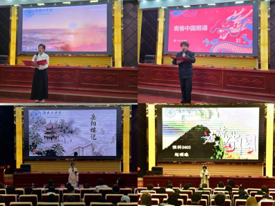 新晋主持人大赛优秀学生选手艾丽妮尕·艾尼瓦尔,杨思婷担纲本次活动主持。16位经过班级预选的参赛选手纷纷登台,他们或激越高亢,或深情婉转,或抚今追昔,或娓娓道来,动情演绎了《祖国啊,我亲爱的祖国》、《山河赋色·红旗飘扬》、《盛世中国》、《岳阳楼记》、《唐诗里的中国》等大批经典优秀作品,青春中国在他们的精彩吟诵中焕彩绽放。