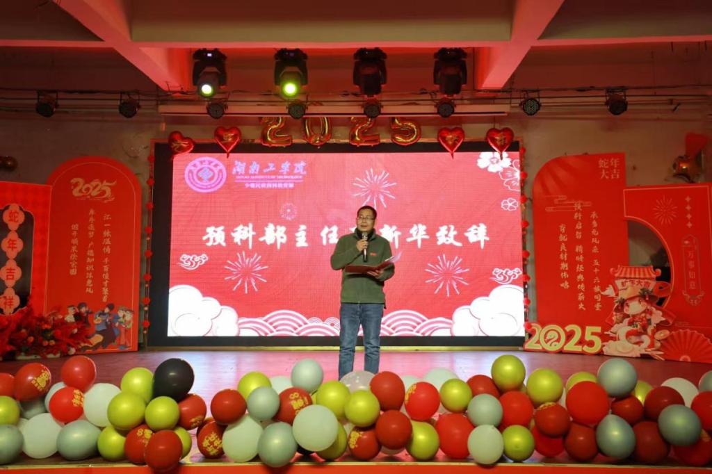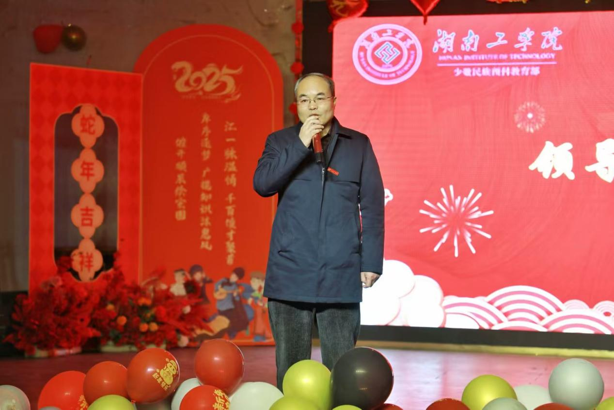 闭幕式上,何建雄即兴发表精彩讲话。他动情说道,同学们如繁星汇聚,从五湖四海相聚湖工,为湖工增添绚丽色彩,这份缘分珍贵而奇妙。为了这份情缘,学校党委和相关部门十分关心并大力支持预科发展,预科部老师们倾心付出,默默耕耘,日复一日,陪伴着同学们成长。他寄语同学们要勤奋学习,加快成长,为民族地区经济社会发展作积极贡献,将来以优异成绩和强烈使命担当报效国家与社会。最后,他预祝同学们在新的一年学业进步,快乐成长!