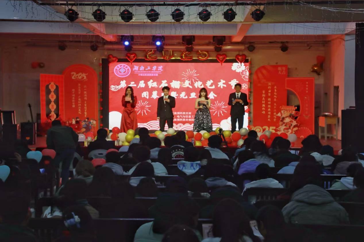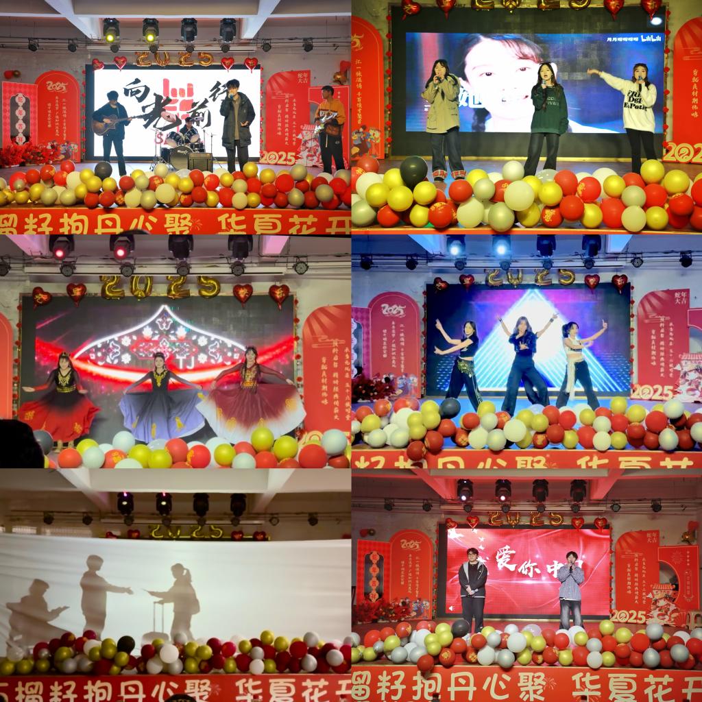 闭幕式后,文艺晚会热烈开场。歌曲《最美的太阳》讴歌了预科学生热烈青春;舞蹈《中华民族一家亲》展现各民族多彩风情、亲如一家;乐队合奏奏响向光前行的铿锵力量;说唱《天上的星星不说话》彰显年轻一代的逐梦理想与信心;街舞《灵动预科》尽显预科学生的蓬勃朝气;小品《预科那些事儿》幽默诙谐再现预科生活的喜乐场景;舞蹈《喜迎乙巳年》充盈对新一年的热情期盼;电信学院选送节目光影幕布剧《此时此刻我们的诗篇》展示青春校园光影生活;校团委选送节目二重唱《我爱你中国》,台上台下热情互动,唱出师生对祖国的热爱,将晚会推上高潮。晚会最后,预科女教师代表以《忆琼瑶·青春印记》为题,集体吟诵了琼瑶女士的部分经典作品,寄语青年朋友珍惜韶华,为晚会增添别样风采。