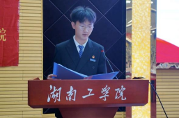工程管理2401班刘飞扬作为新生代表发言,他从回顾高中生活、感恩相遇湖工、展望未来学习生活三个方面展示了积极乐观的态度,以最饱满的精神面貌迎接大学生活。