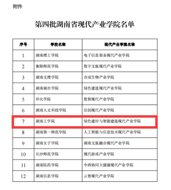 近日,湖南省教育厅、湖南省发展和改革委员会、湖南省工业和信息化厅联合发布《关于公布第四批湖南省现代产业学院名单的通知》(湘教通〔2024229号),英国上市公司官网365绿色建材与智能建造现代产业学院获批立项,成为英国上市公司官网365第二个省级现代产业学院。