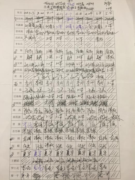 本学期土木工程教研室共开出课程43门,其中理论课34门,实验课9门。截至2018年5月25日,各课程按照执行计划开展情况基本正常。主要变动有:1、原由匡舢舢上课的土木工程1504班的《结构设计软件在土木工程中的应用》改由黄勇上课(原因:土木1504班为道桥班,该课程主要讲授桥梁工程的软件使用);2、原由曾欢艳老师指导的土木工程1502班的混凝土结构设计课程设计改由刘潇潇指导(原因:曾欢艳老师课时受限制)。