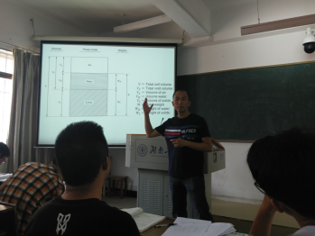20190910日上午,美国北亚利桑那大学土木工程系何俊兴教授应邀来建工院开展了本科生基础知识学术讲座地下水、土的三相组成及物性指标。土木工程教研室部分老师及土木工程专业学生90余人聆听了本次讲座。