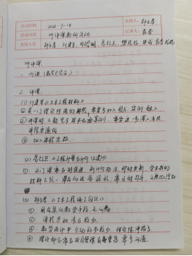 工程造价教研室于7月18日在建工楼6404开展了磨课、评课活动,教研室老师精心准备,使听评课收到了较好的效果。本次教研室磨课共7名教师参加,1名教师请假,学院磨课小组参与。