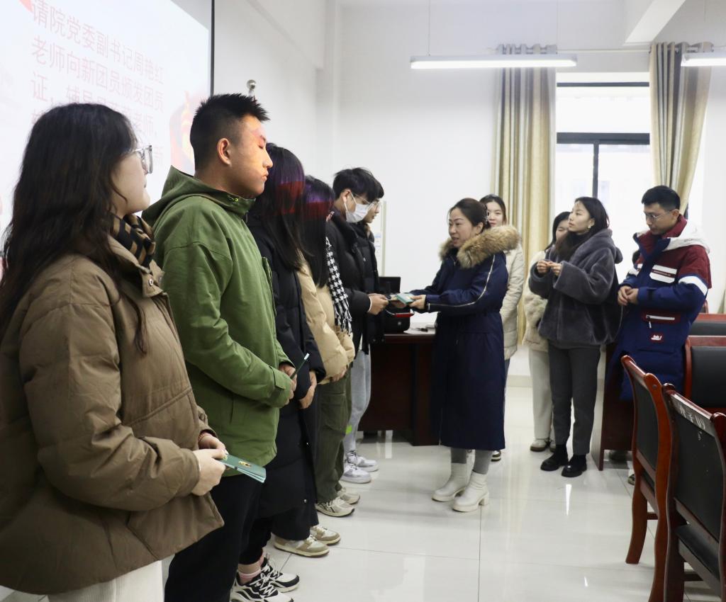 仪式在激昂的国歌声中拉开序幕。活动伊始,院团委副书记周丹妮宣读接收新团员名单,新发展团员在赵志惠的带领下庄重宣读入团誓词,他们铿锵有力的宣誓充满了对未来的信心和决心,展现了他们积极向上的精神风貌。