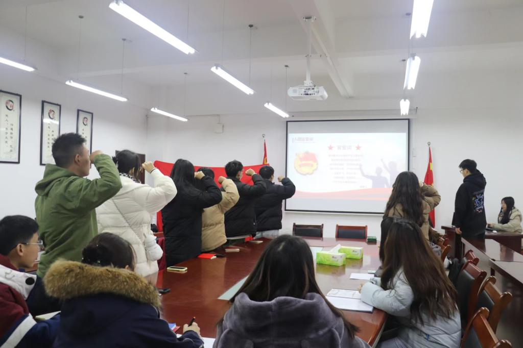 为深入贯彻落实习近平总书记关于加强新时代团员队伍先进性建设的重要指示,持续加强发展团员调控,进一步增强广大团员青年的组织意识和爱国意识,推动共青团事业发展,依据《关于做好2023年下半年新团员发展工作的通知》要求,外国语学院于12月18日在外语楼317举行2023年下半年新团员入团宣誓仪式,党委副书记周艳红,辅导员蒋蔚、李一平,院团委团员教育发展中心代表参加此次宣誓仪式。