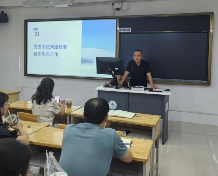 党委书记刘斌总结了2024年上半年意识形态工作,分析了当前意识形态工作的形势和任务,部署了2024年下半年意识形态工作,对全院教职工提出了三点要求,一是扛稳扛牢政治责任,要深入学习党的二十大报告、党的二十届三中全会中关于意识形态的论述,落实好意识形态工作责任制;二是加强舆情监测预警。针对当前复杂多变的网络环境,要坚持系统思维,构建全方位监测体系,提升舆论引导与网络安全保障能力,确保新学期开学工作的平稳有序进行。三是守牢意识形态阵地。在人才培养、学生管理、学术研究等方面不断推进意识形态工作落实,压实、筑牢、守稳意识形态阵地。